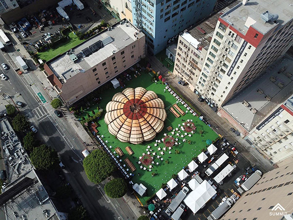DTLA’s vibrant and dynamic environment is filled with an array of cultures and eye-catching marvels. So it’s only fitting when Summit LA, a festival for forward-thinking leaders in cutting edge industries to exchange ideas, asked The DoLab to erect one of their unique constructions in the heart of Los Angeles. Our 843 S. Spring Street lot became the location for the event’s Wallapod, a 7000-sq. ft. artistic dome structure, setting this creative convention amidst the energy and inspiring environment that Los Angeles has to offer. See what it took to build this amazing structure in this article.
